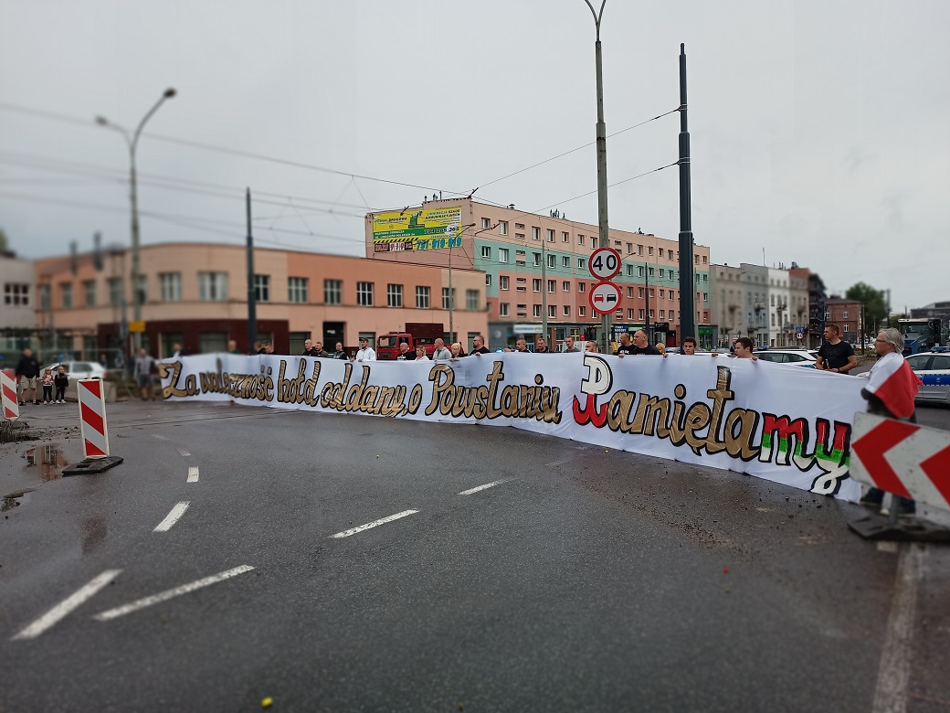 Jak co roku mieszkańcy Dąbrowy Górniczej w dniu 1 sierpnia oddają hołd Powstańcom Warszawskim. Również dzisiaj o godz. 17.00 w miejscu Ronda Żołnierzy Wyklętych w centrum miasta wstrzymano ruch samochodowy, nota bene odbywający się ze względu na trwającą przebudowę głównej arterii komunikacyjnej w Dąbrowie Górniczej i tak w sposób rwany/koszmarny, i oddano hołd Powstańcom. Przy okazji podziękowania dla sprawnie działających policjantów z Komendy Miejskiej Policji w Dąbrowie Górniczej.